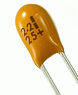 전극에 탄탈륨이라는 재질을 사용한 콘덴서로, 용도는 전해 콘덴서와 비슷하지만 오차, 특성, 주파수 특성등이 전해 콘덴서보다
