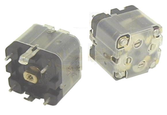 공기를 유전체로 사용한 가변용량 콘덴서로, 라디오 방송을 선택하는 튜너 등에 사용합니다.